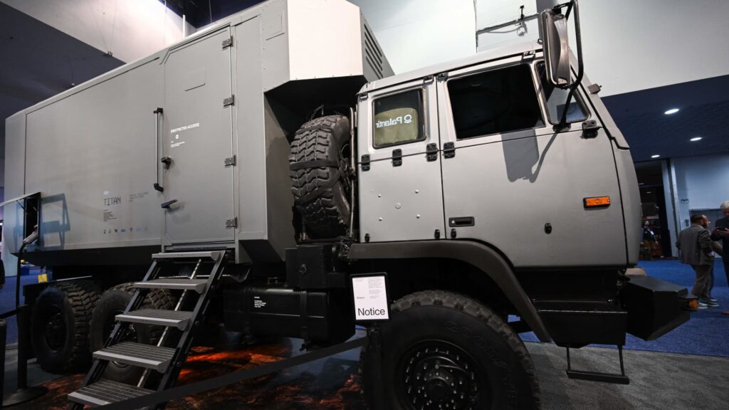 The Tactical Intelligence Targeting Access Node systems, or TITAN, act as a mobile ground station that harness AI to collect data from space sensors to assist soldiers with warfare strategy and improve strike targeting and accuracy, according to Palantir.