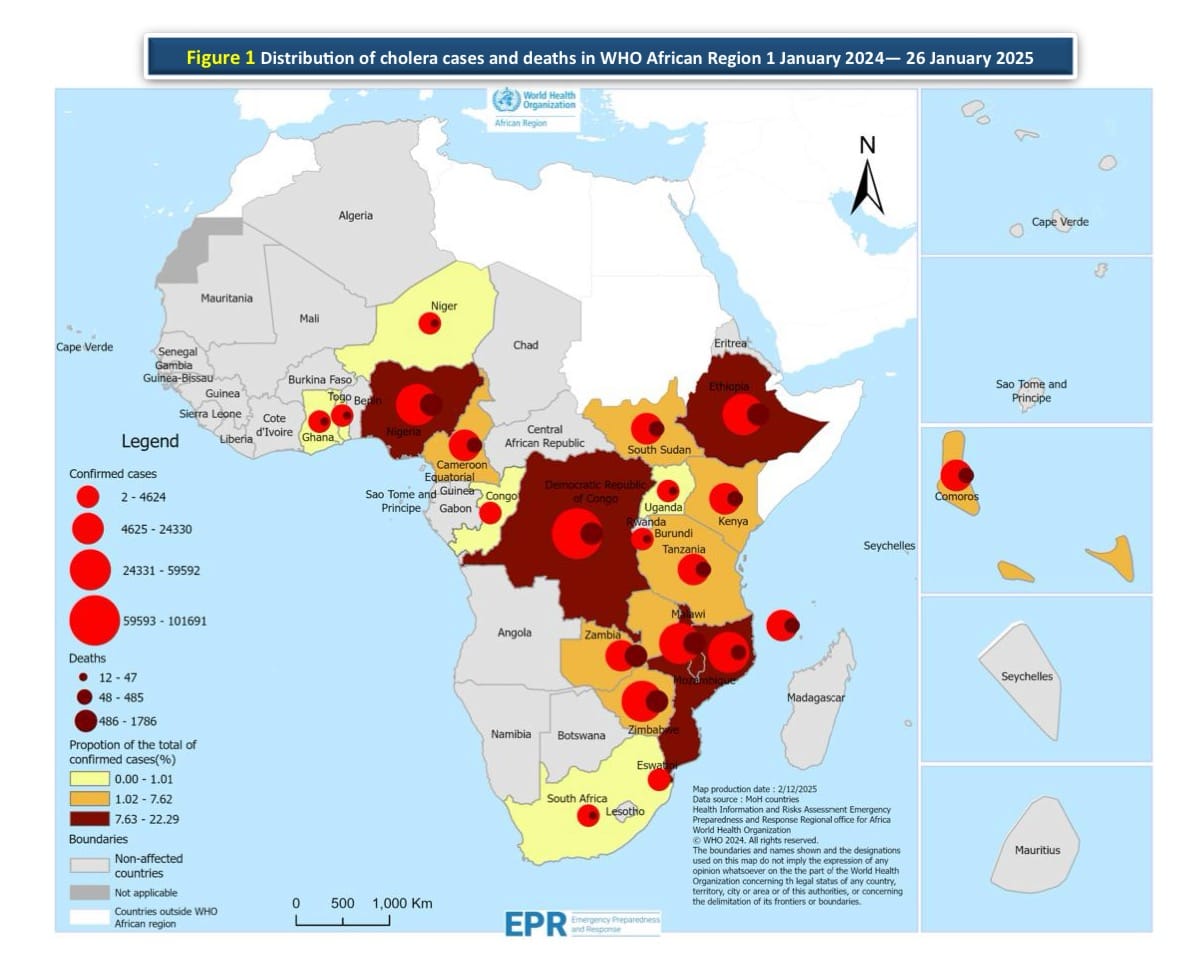 - Over 220,000 cholera cases have been reported in Africa in early 2025, yet case-fatality rates are lower than in previous years in many high-burden nations.