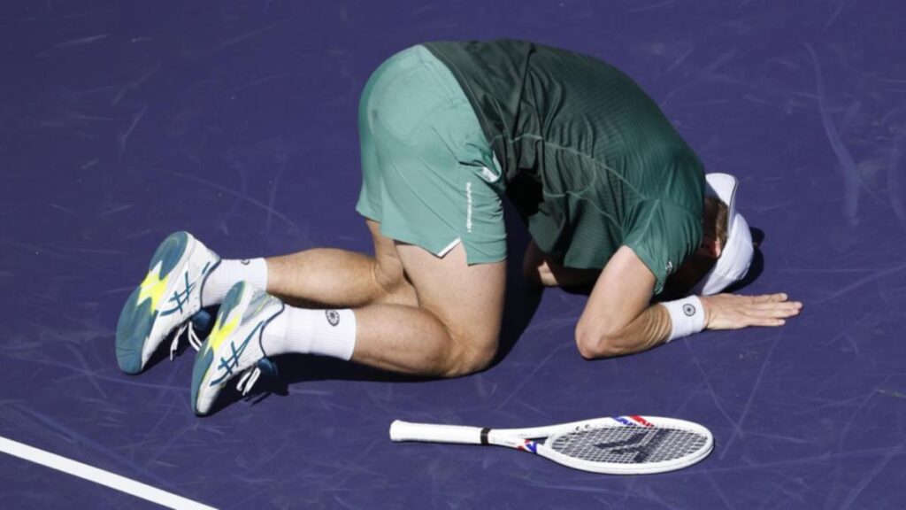 The Dutchman collapsed on the court after converting his sixth match point to end an absorbing three-hour, seven-minute affair under sunny skies on Stadium One court.